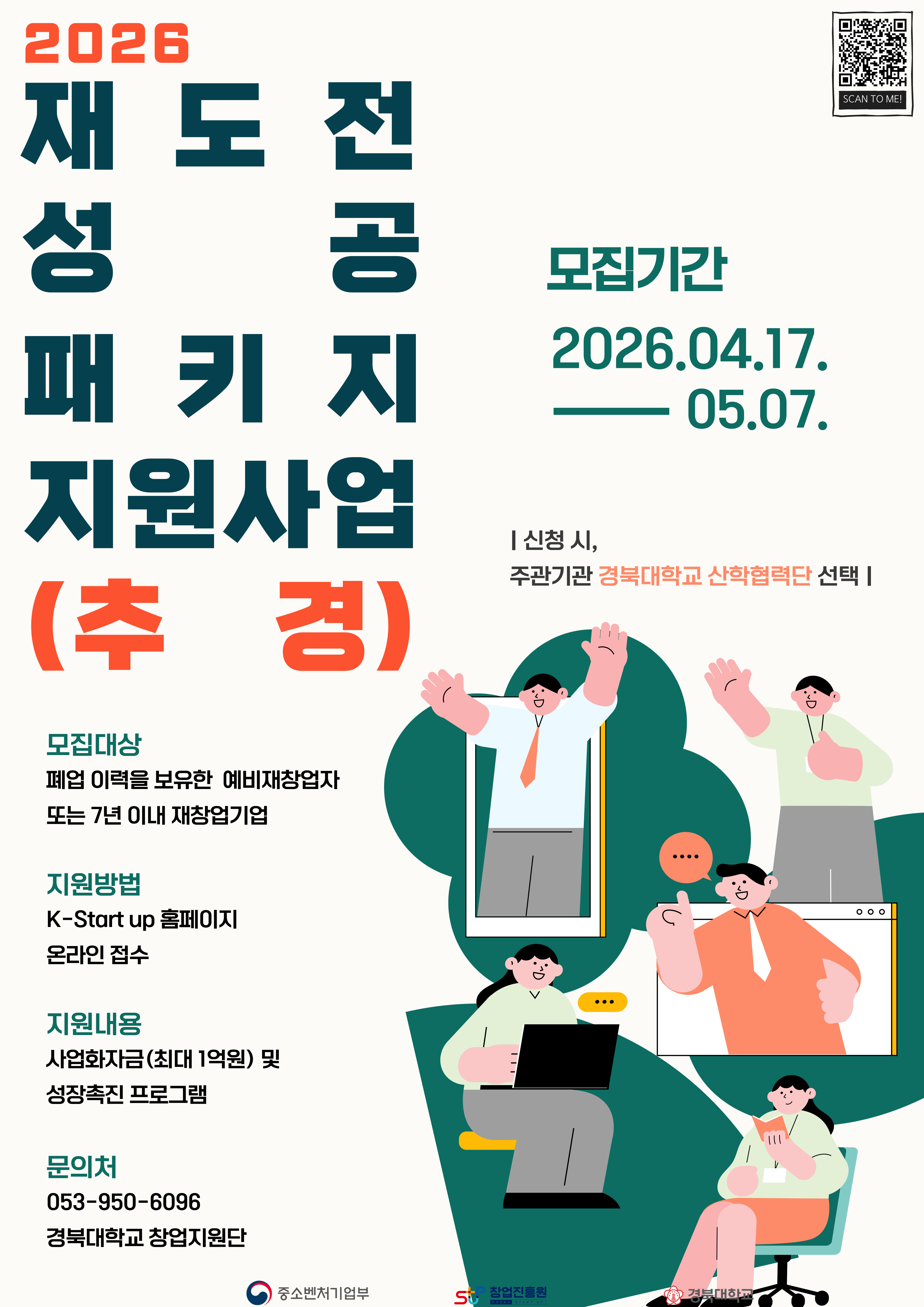 모집중(4.17.~5.7.)[경북대학교 창업지원단] 2026년 재도전성공패키지(추경) 예비재창업자 및 재창업기업 모집